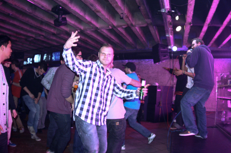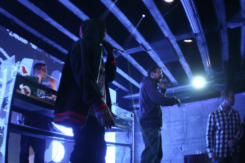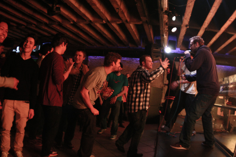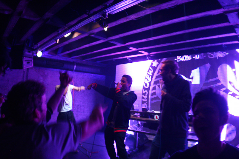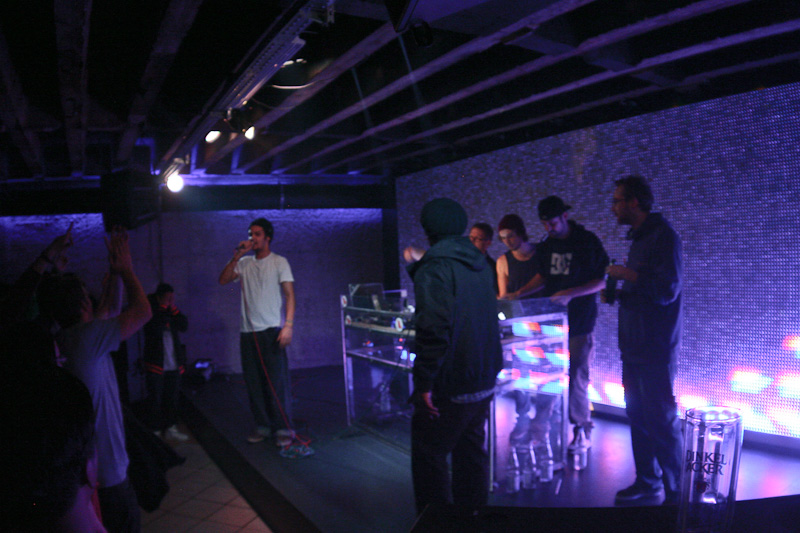 Mit der Zeit raffte aber auch der letzte Styler, der eigentlich kam, um die Mädels mit seinen Tanz-Moves zu beeindrucken, dass Live-Musik manchmal besser als ein DJ-Set ist. Eine knappe Stunde präsentierte die B.u.S.-Crew ihre Platte „Bus“ und machte dabei eine Figur, die zwar nicht von viel Live-Erfahrung zeugte, aber auch nicht als Reinfall zu bezeichnen war. Etwas mehr Bewegung auf der Bühne und weniger konfuse Song-Absprachen direkt vor dem Publikum hätten ihrem Auftritt etwas mehr Professionalität und etwas weniger Jugendhauscharakter verliehen. So blieb vielen Gästen ein Auftritt in Erinnerung, von dem man nur noch die grelle Leinwand des SpeakEasys im Kopf hat.