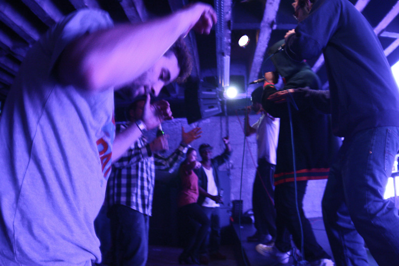 Es war die Nacht vor Heilig Abend und die Wurst-und-Fleisch-Nachbarn vom SpeakEasy luden unter dem Motto „Juicy HipHop“ zur Homegrown-Party mit den DJs Roy Bear und Jean Darm ein. Der optimale Anlass für die B.u.S.-Crew, um dem Stuttgarter Publikum ihr erstes Album „Bus“ vorzustellen. Da sich das SpeakEasy sehr langsam füllte, ließen sich auch die fünf Männer von der B.u.S.-Crew mit dem Beginn ihrer Show Zeit. Kein Problem, denn ihr Auftritt wurde als kleines Highlight zwischen den DJ-Sets und weniger als alleinstehendes Main Event gesehen. So hatten es die drei Rapper der Gruppe – als sie gegen zwei Uhr auf die Bühne des Clubs kamen – relativ schwer die Aufmerksamkeit der rund hundert Leute für sich zu gewinnen.