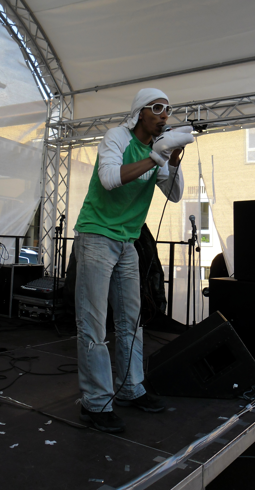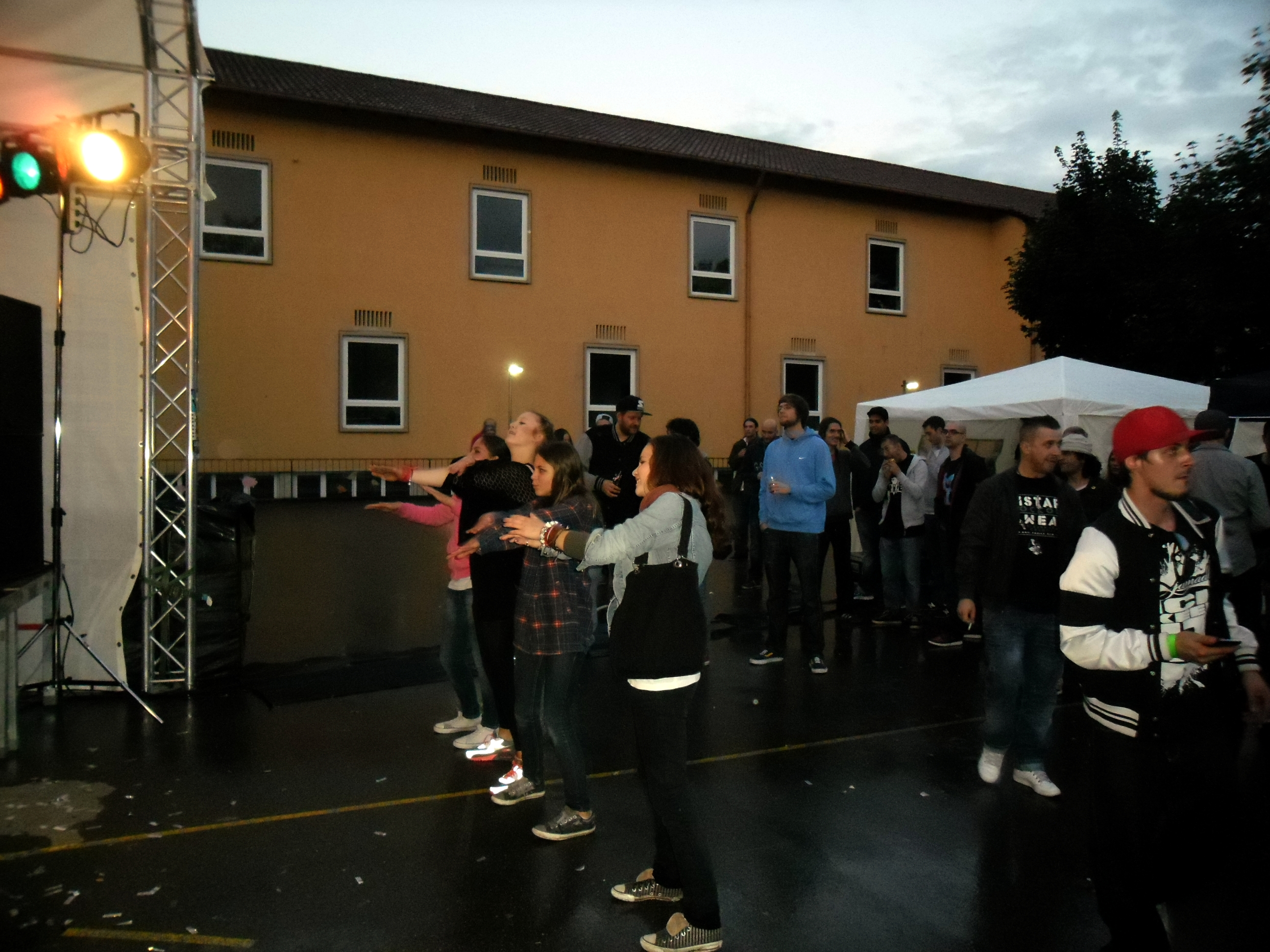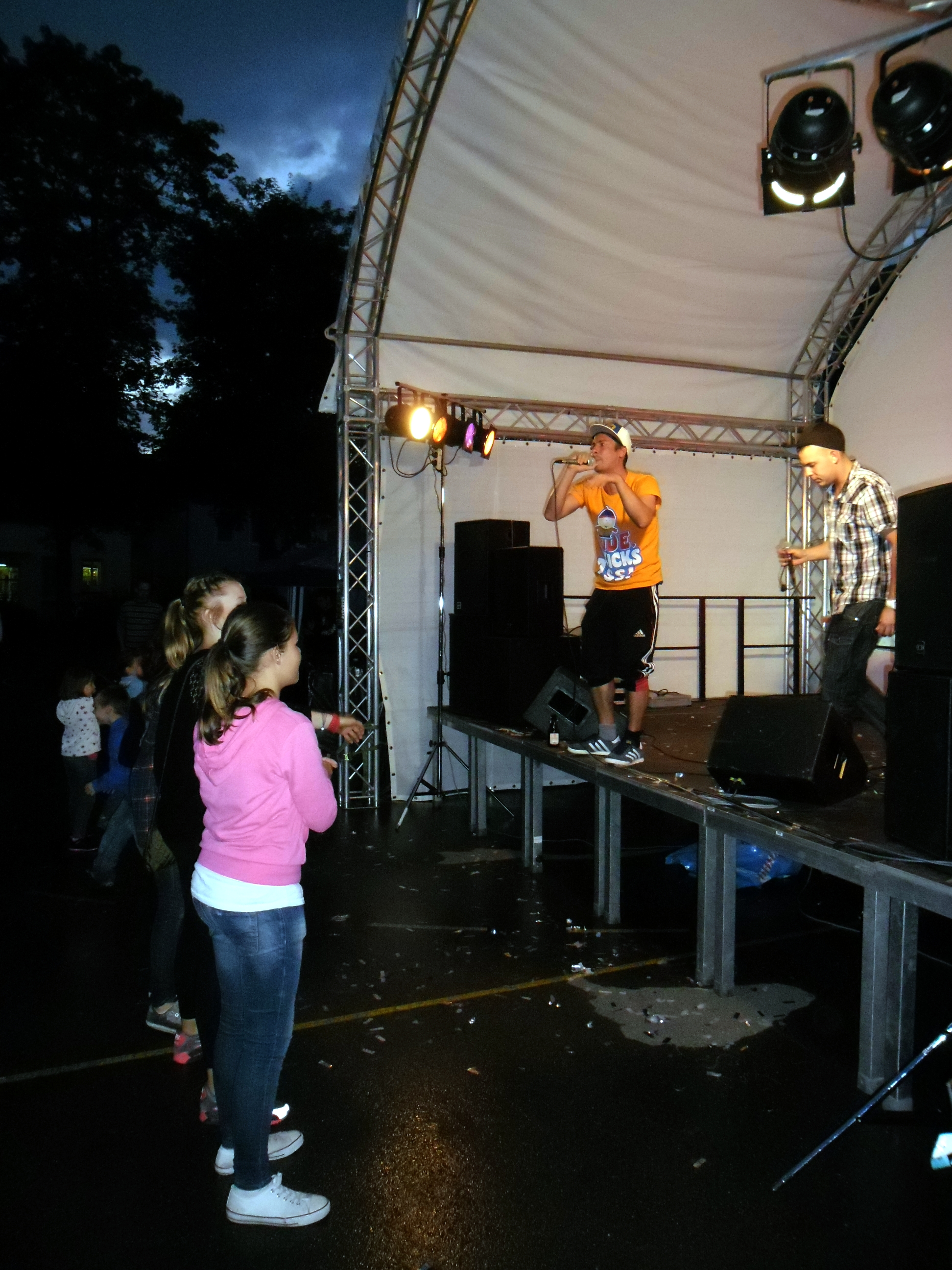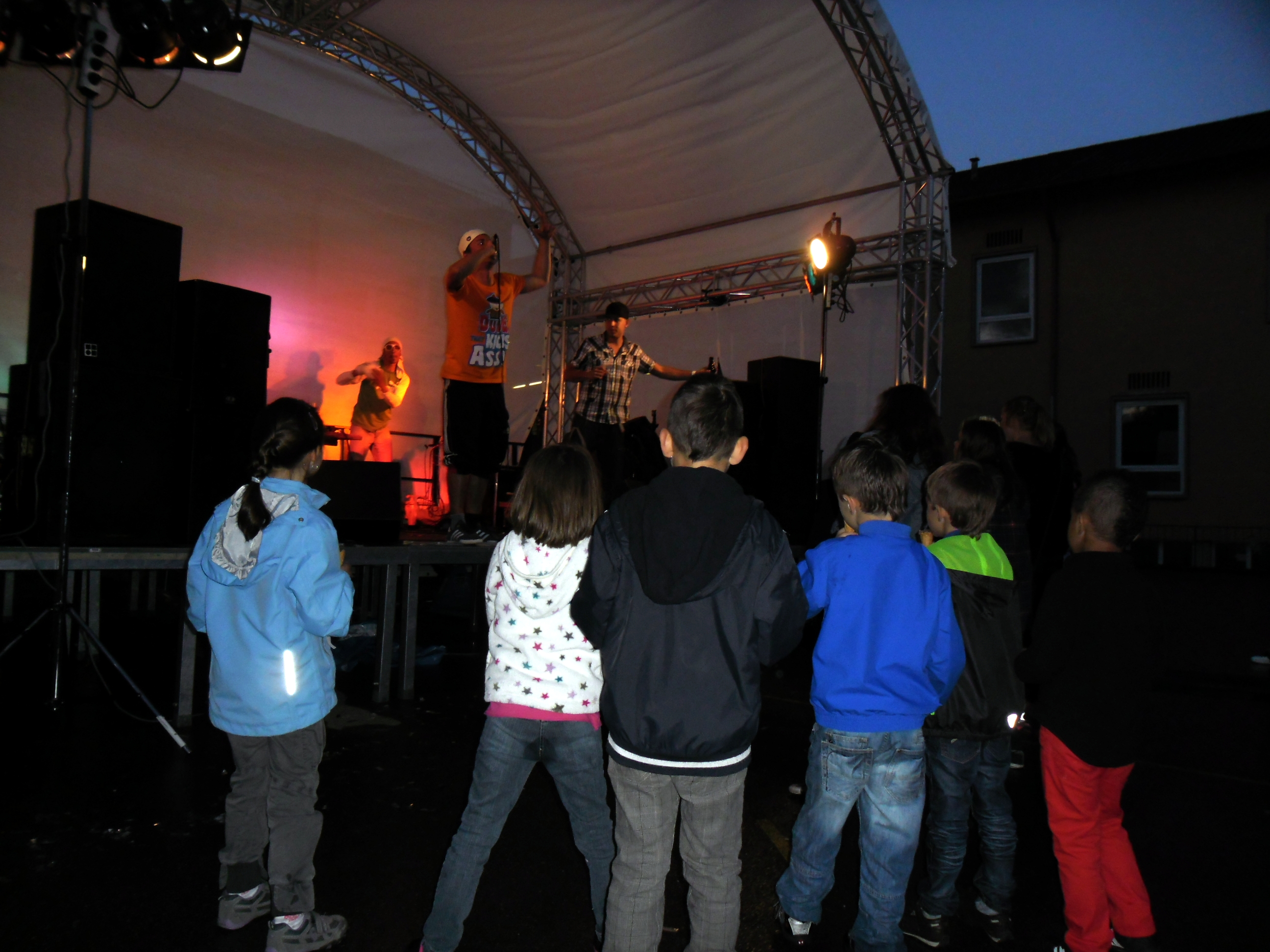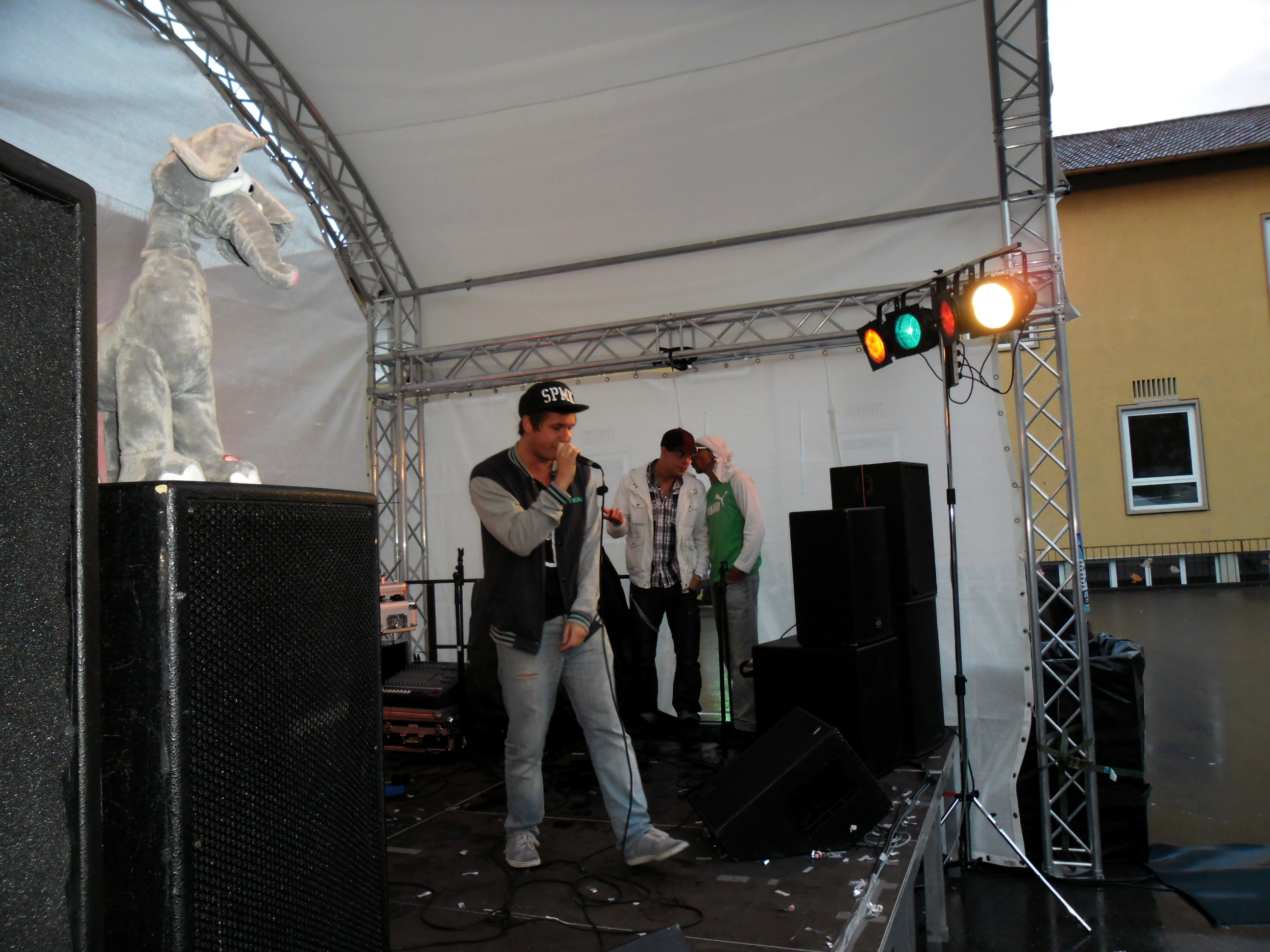 Und auch wenn sich das Publikum meistens reserviert zeigte, bemühte sich gerade einer dies zu ändern. Körpa Klauz riss auch ohne das richtige Passwort eine Show vom Stapel, die ihresgleichen suchte. Der große Hip-Hop-Kindergeburtstag war am Laufen und Klauz als der coole Clown mittendrin. Da ließen sich die ganz kleinen Zuschauer nicht lumpen und tanzten vor der Bühne, als wäre Barney der Dinosaurier zurück. Man kann nur gewinnen, wenn man einen Stuttgarter Babyboom berappt und anschließend den Aal-Tanz propagiert. Familienunterhaltung at the best. Zu späterer Stunde fanden sich immer mehr Menschen auf dem Hof der Gablenberger Hauptschule ein. Shema und der Nussigmilde gaben der Menge Rap. Und zwar ordentlich. So richtig mit Bumm und Tschak. Ein Gastspiel von Zwei mit Mike inklusive. Sickless und Jay von wirscheissengold betraten ebenfalls die Bühne, um der Hörerschaft ihre Idee von Rap zu präsentieren. Da kam auch ein Abstecher in immer beliebter werdende Dubstep-Gefilde nicht zu kurz.