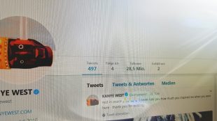 20.06.18 // 9:25 0 Kanye West auf Twitter: Diesen vier Menschen folgt er Gerade einmal vier Menschen folgt Kanye West auf Twitter 28,5 Millionen Twitter-Nutzer folgen Kanye
